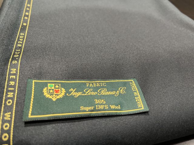 グリーンの生地はご成人式用として人気なのですが、この深いグリーン。落ち着きがあり渋さもありますね。個人的にはダブルでメタル釦を付けるなんてのもありではないかと、、。
