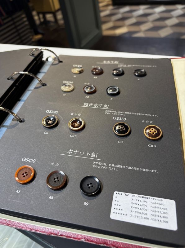 釦・裏地のオプションも有料のところからお選び頂けます!