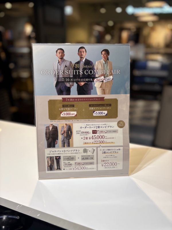 スーツ2着やスーツ、ジャケパンなどで2着お買い上げいただいた方には、、、、
