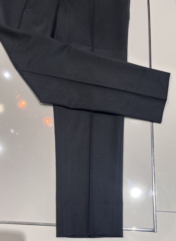 スラックスに縦に入るライン、通常アイロンプレスすることで折り目をつけていますが