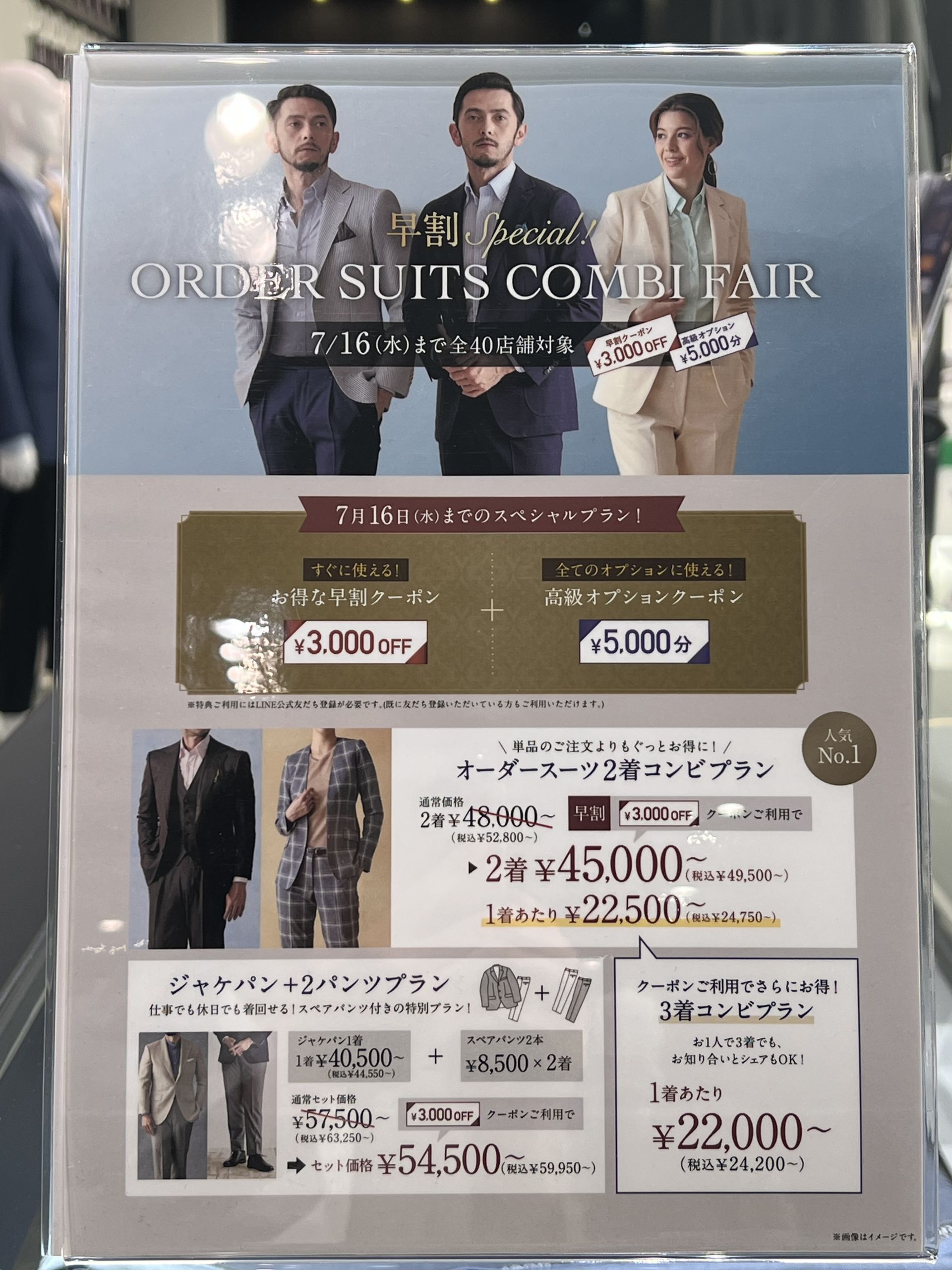 なんとなんと今月2着ご購入でお買い上げ金額から3,000円の