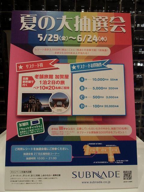 旅館の宿泊券や、サブナード全店で使用出来る金券などが当たります。