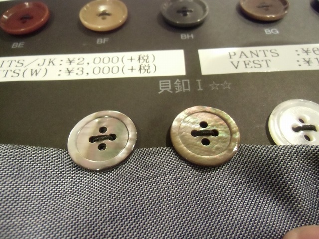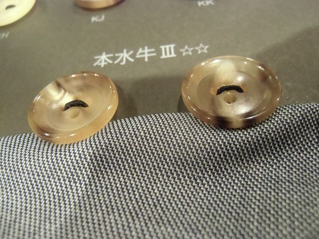 高級釦の代名詞、水牛釦を付けたり出来ます。