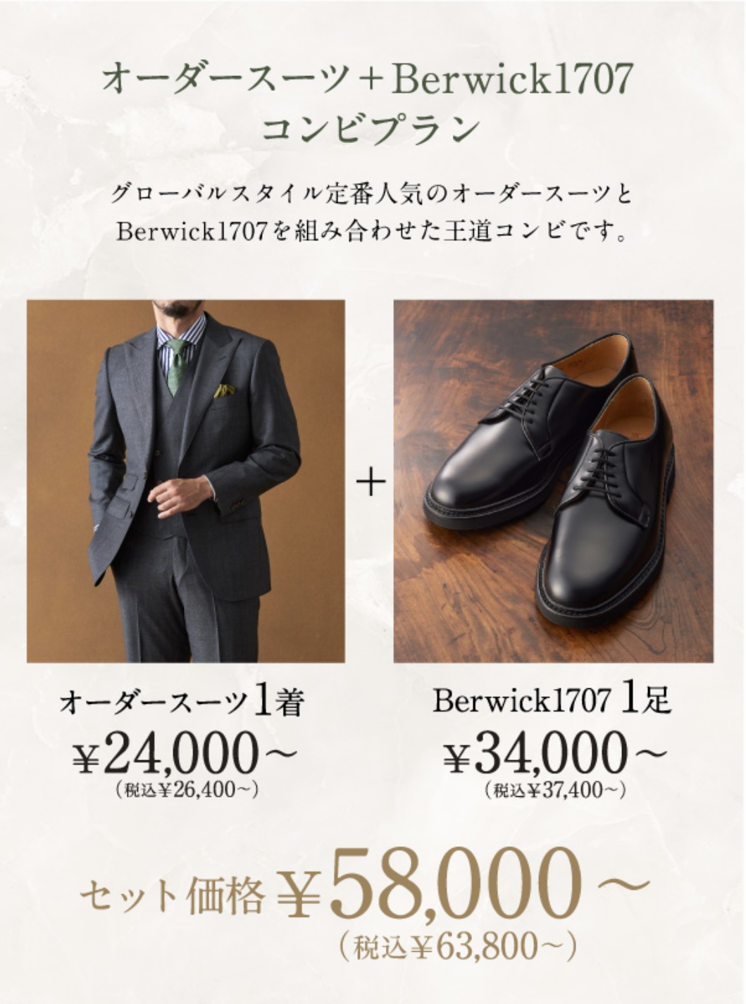 グローバルスタイルはスーツ二着以上ご注文でコンビ価格の適用になり