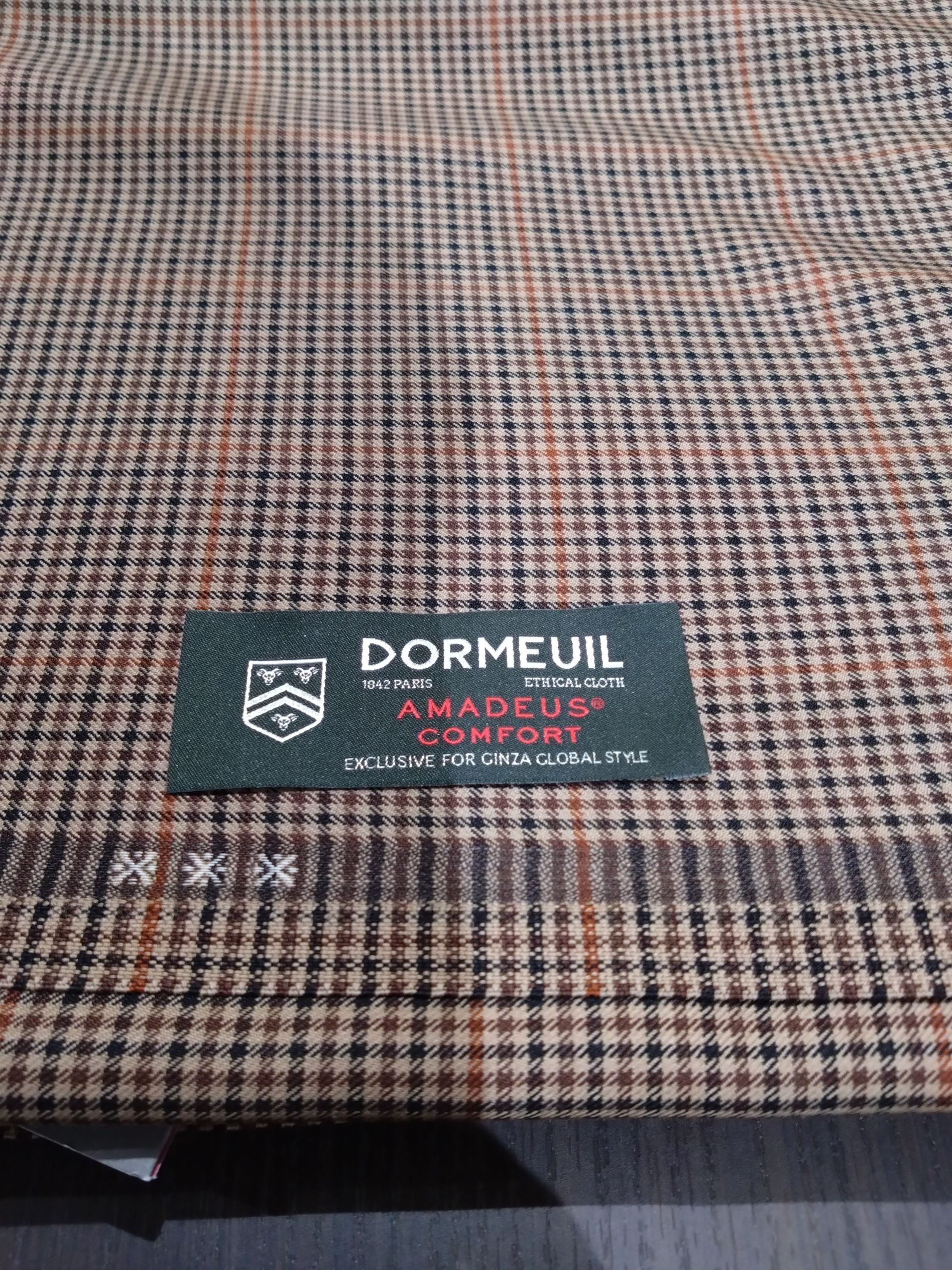 フランスの生地商社のドーメルの代表的なコレクションのアマデウスをもとにグローバルスタイルとドーメルが共同開発したアマデウスコンフォートのブラウンのお洒落なガンクラブチェックになります。