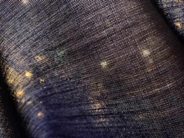 ↓例に挙げたのと同じ青の生地を光にかざした写真です。平織りの通気性の良さが視覚からわかります。