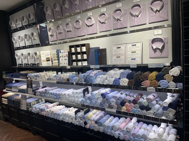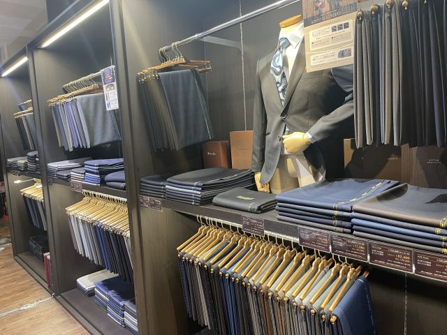 というのも、まずフロアの入口にシャツ生地、隣にジャケット、礼服、