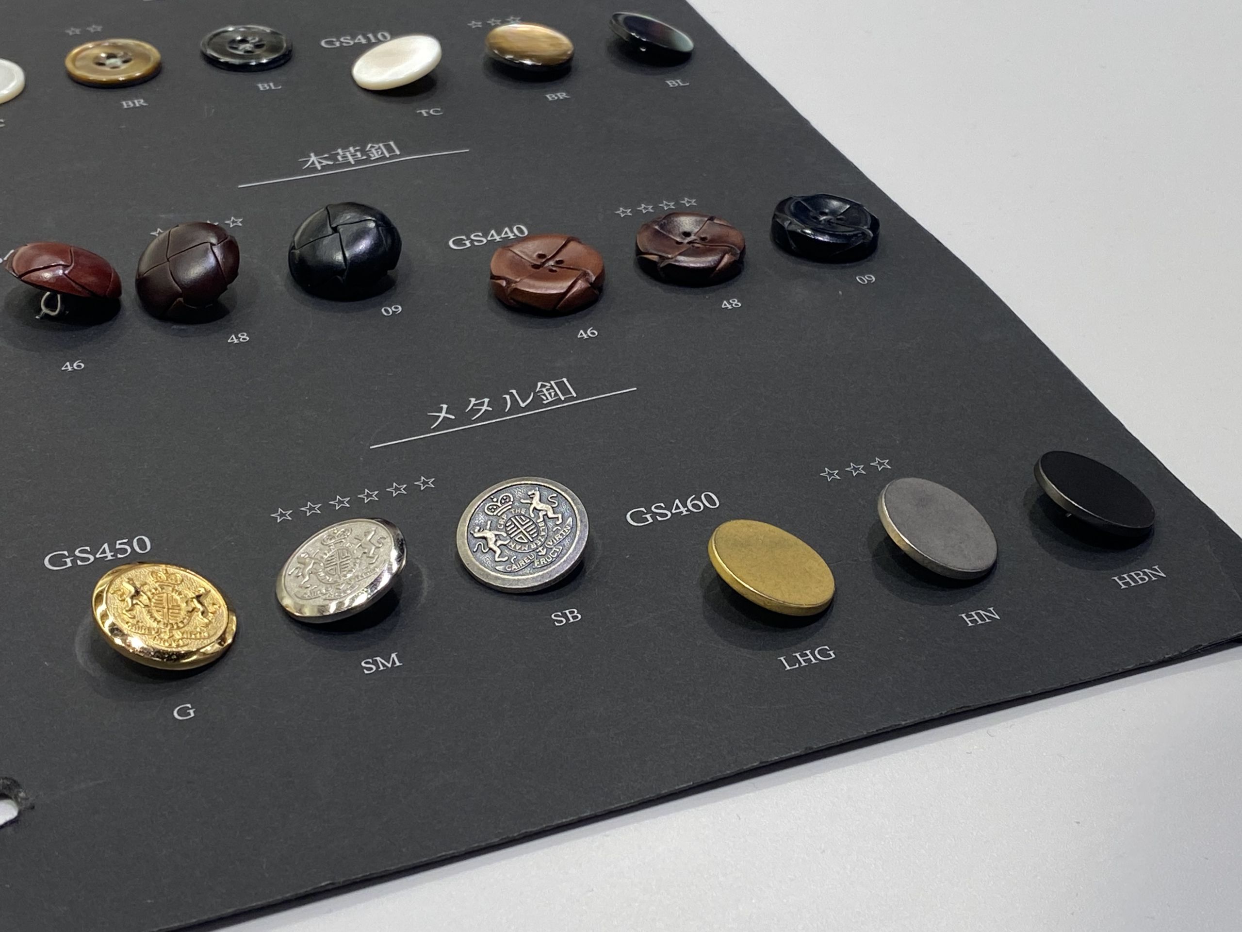メタルボタンは¥3,000+税~¥12,000+税のオプション料金でお選びいただけます。