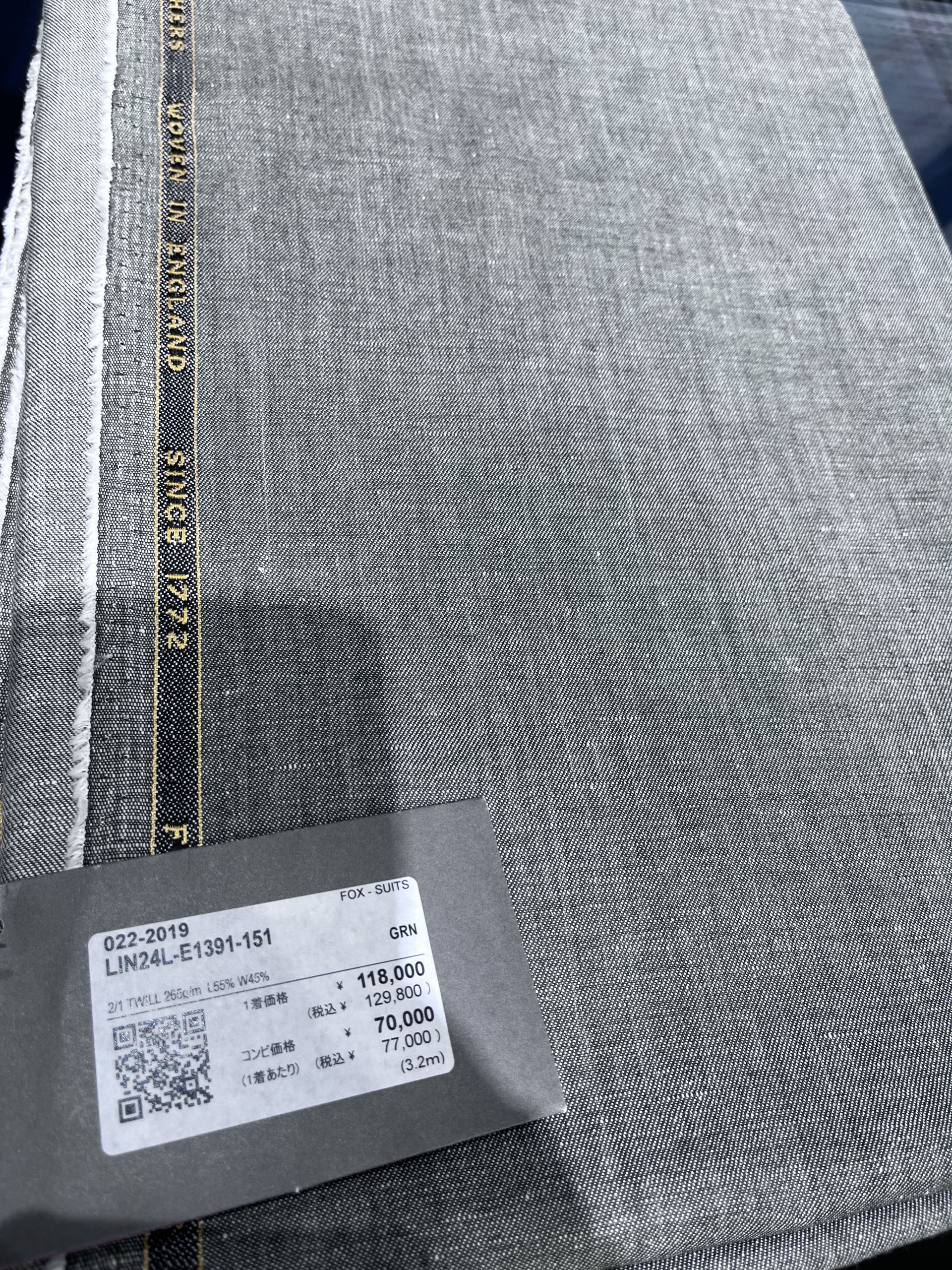 この生地はスーツに仕立てた時に化けます。