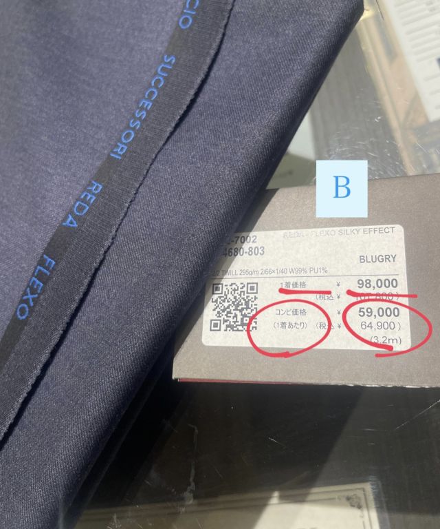 1着価格…1着でお仕立て頂いた場合の金額(ジャケットとパンツ)