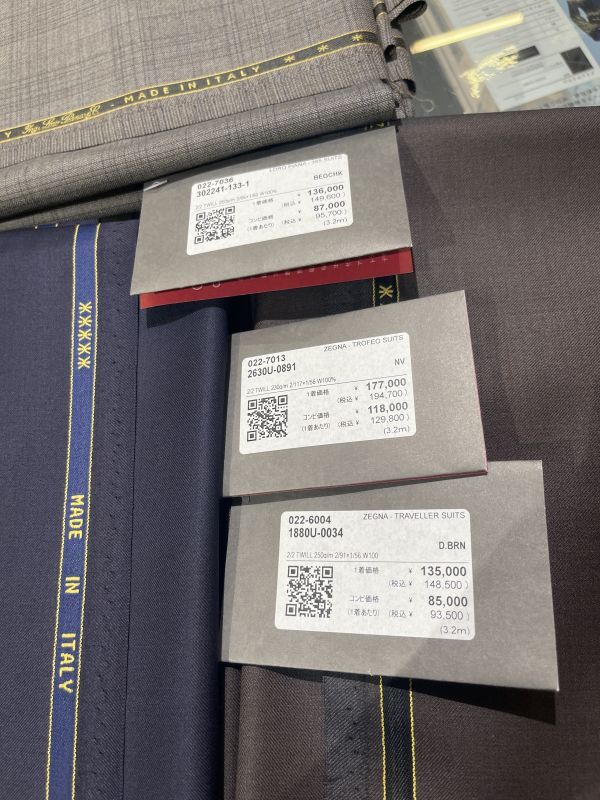 生地にはブランドや価格帯を問わず、それぞれにタグがついています。
