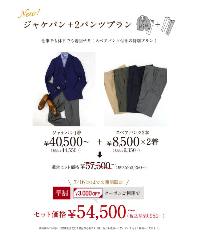 今月のお値引きはかなりお得なのでこの機会にお得にオーダースーツをご購入してみた下さい。