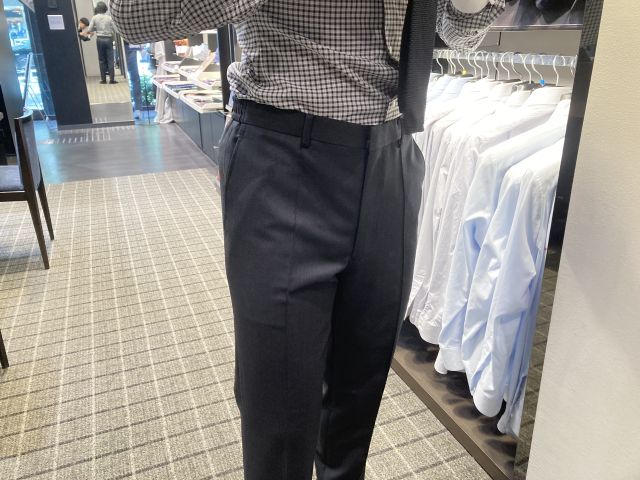 通常のスラックスよりもややカジュアルな印象になりますが、これから夏にかけての季節や普段スーツを着用しない方にもとてもおすすめのモデルとなっております。