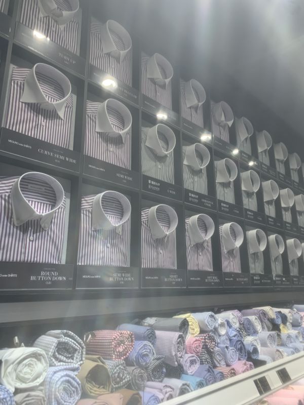 シャツもこんな感じで襟型やカフスの形などの見本を置いているので、参考にしていただけます!