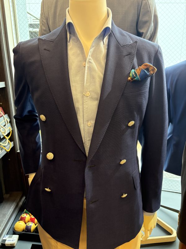 ポケットチーフをそろえていただくと、合わせやすいためおすすめです。