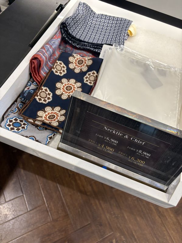 新宿三丁目店にもポケットチーフのご用意ございますので、