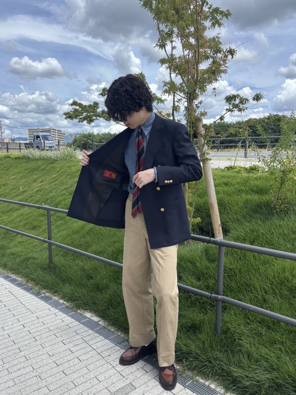 私が着用しているようなネイビーブレザーが最も汎用性がございます。