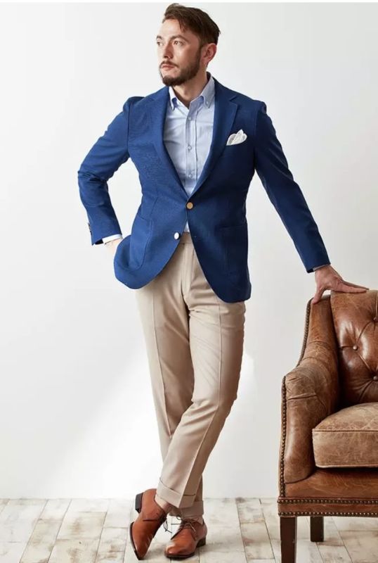 ネイビージャケット×ベージュスラックス