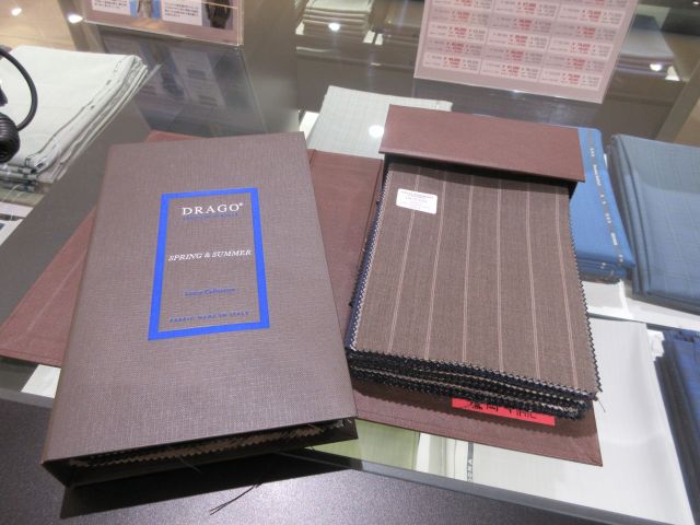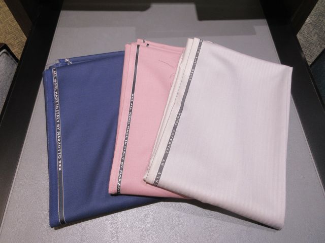 また、多くのオーダースーツのお店では画像のような小さい布見本のバンチ生地が多いかと思います。