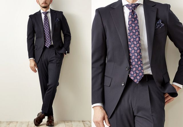 ビジネススーツの定番としてある「ダークネイビー」。着用シーンが多く汎用性の高さが人気です。