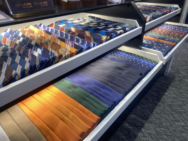他にもたくさんのネクタイがございますのでスーツやワイシャツ作るついででも構いませんのでネクタイコーナーを