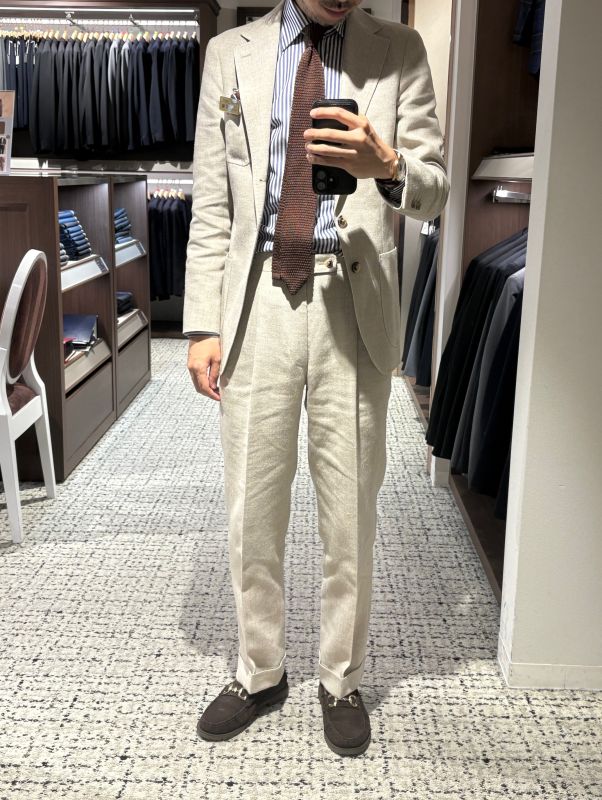 生地感もざっくりしており、まさにこの季節にうってつけのスーツ!