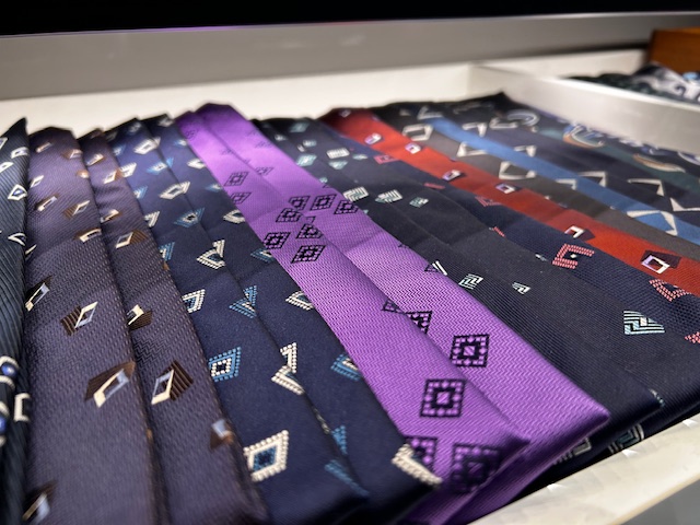 ガッツリパープルなネクタイでもよし、ワンポイントでのパープルもよし、様々なスタイリングが可能です。