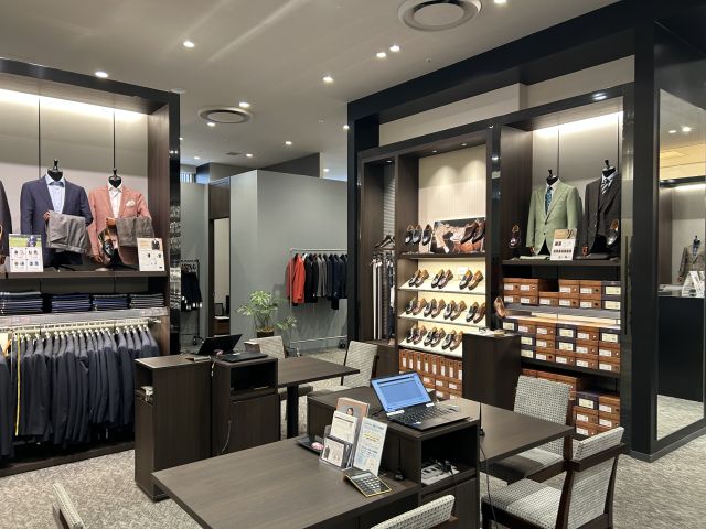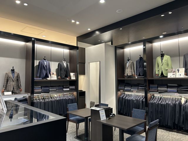 コチラのフロアはサンプルのスーツが多く飾ってあるので