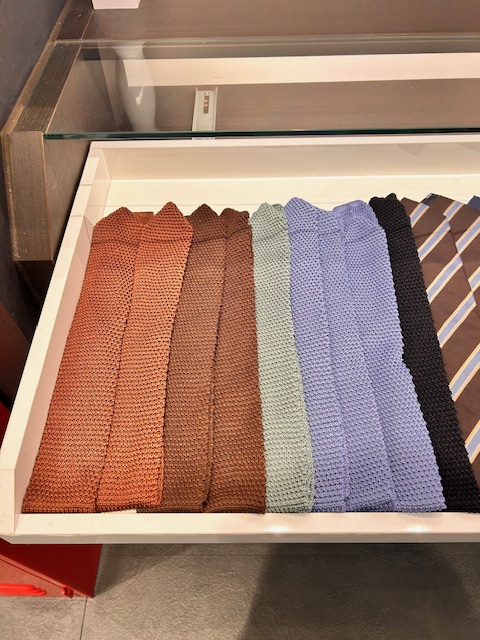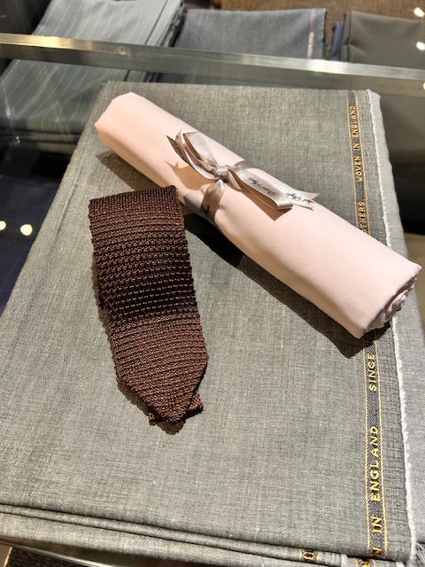 ここ京都四条店にあるサンプルスーツとニットタイを交えてボディの着せ替えをしました。