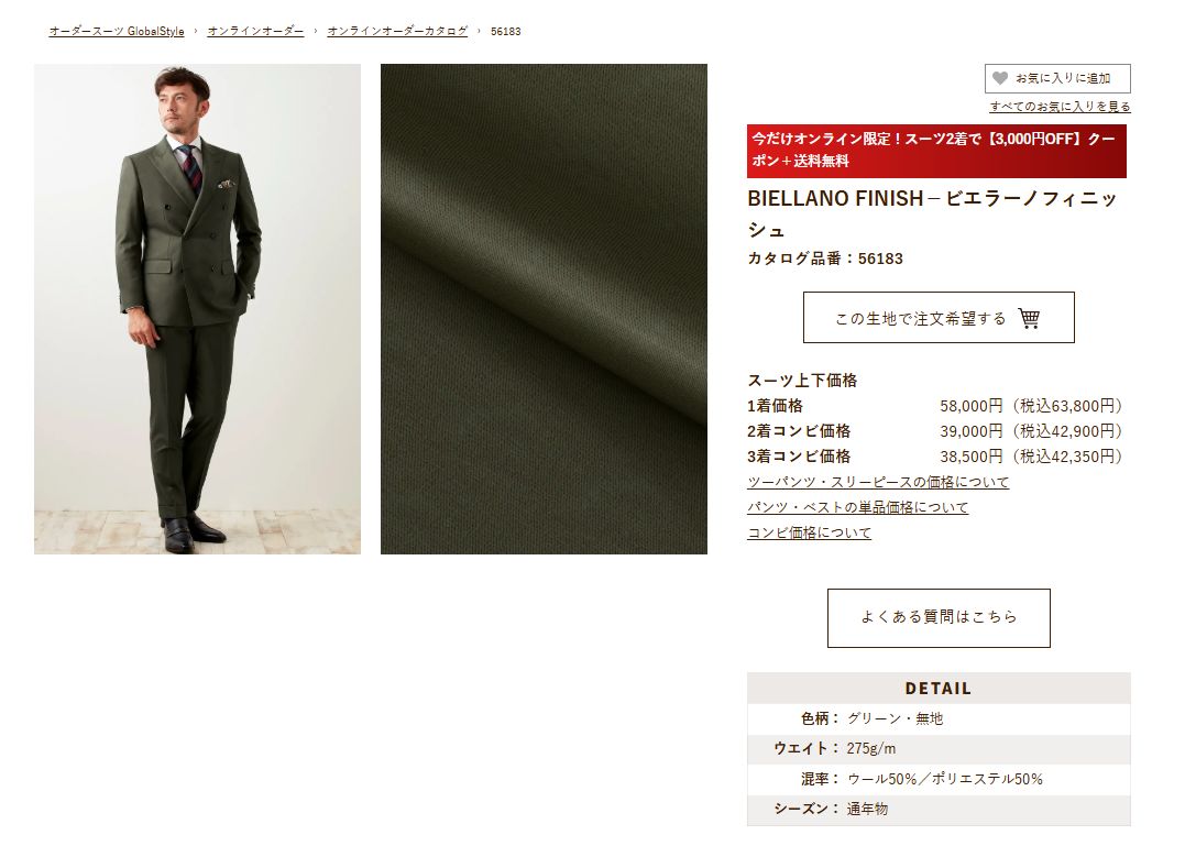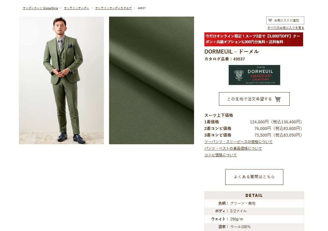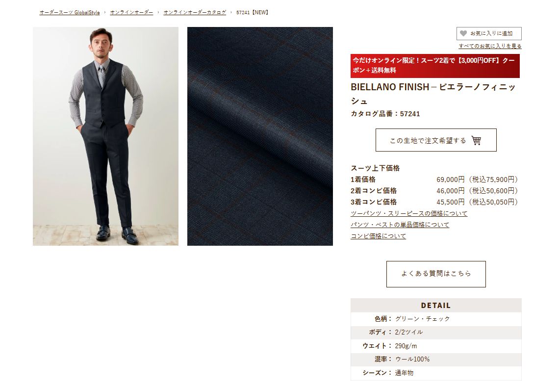 グローバルスタイルでは、オーダースーツを2着同時にご注文頂けますと、