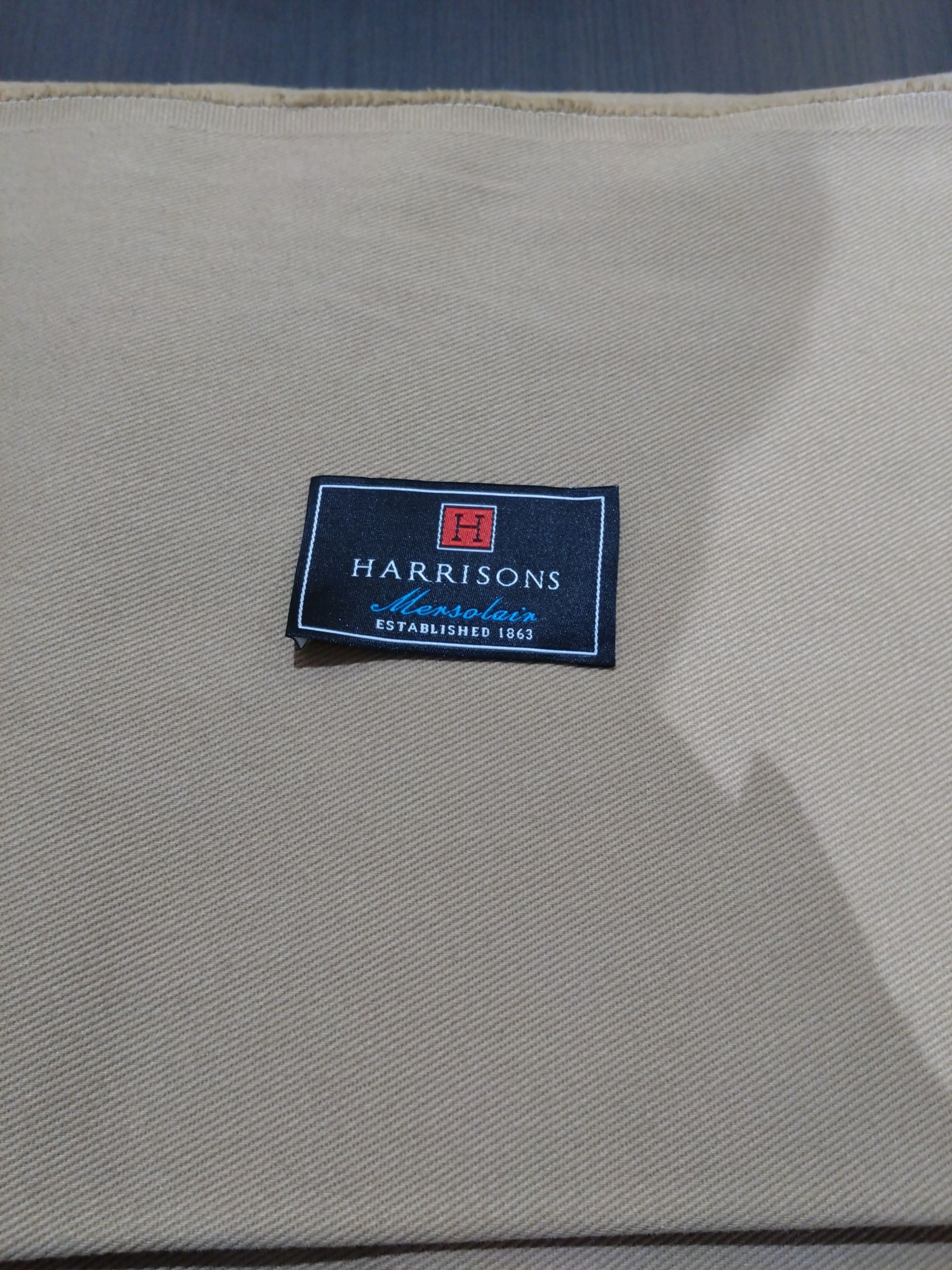 ハリソンズは1863年イギリスのエジンバラで創業した生地商社で、スーツの本場イギリスのサヴィルロウにあるテーラーでは必ずおいてある赤いバンチブックで有名なブランドになります。