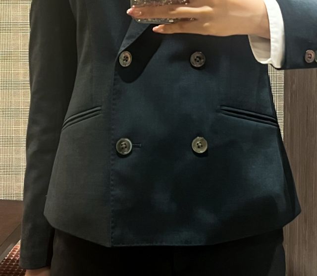 結論から申し上げますと、レディーススーツはフロントボタンは全て留めるのが基本です。