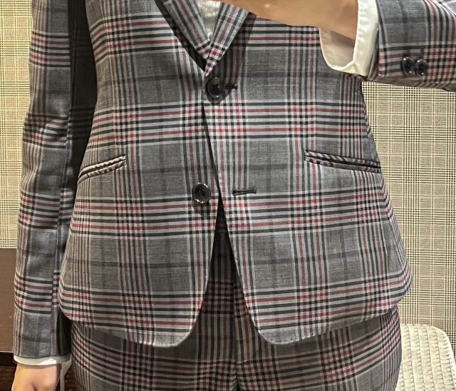 理由は単純に、レディーススーツはボタンを全て留めた状態が一番綺麗に見えるようにデザインされているためです。