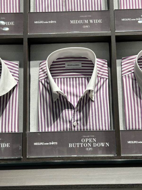 襟の開き具合は同じですが、ボタンダウンが付くことによりよりカジュアルさが引き立ちます。
