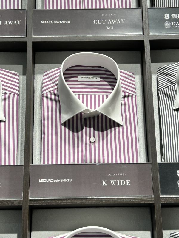いたってシンプルな襟の形に見えますが、レギュラーの物よりも襟の角度が広くなっているため
