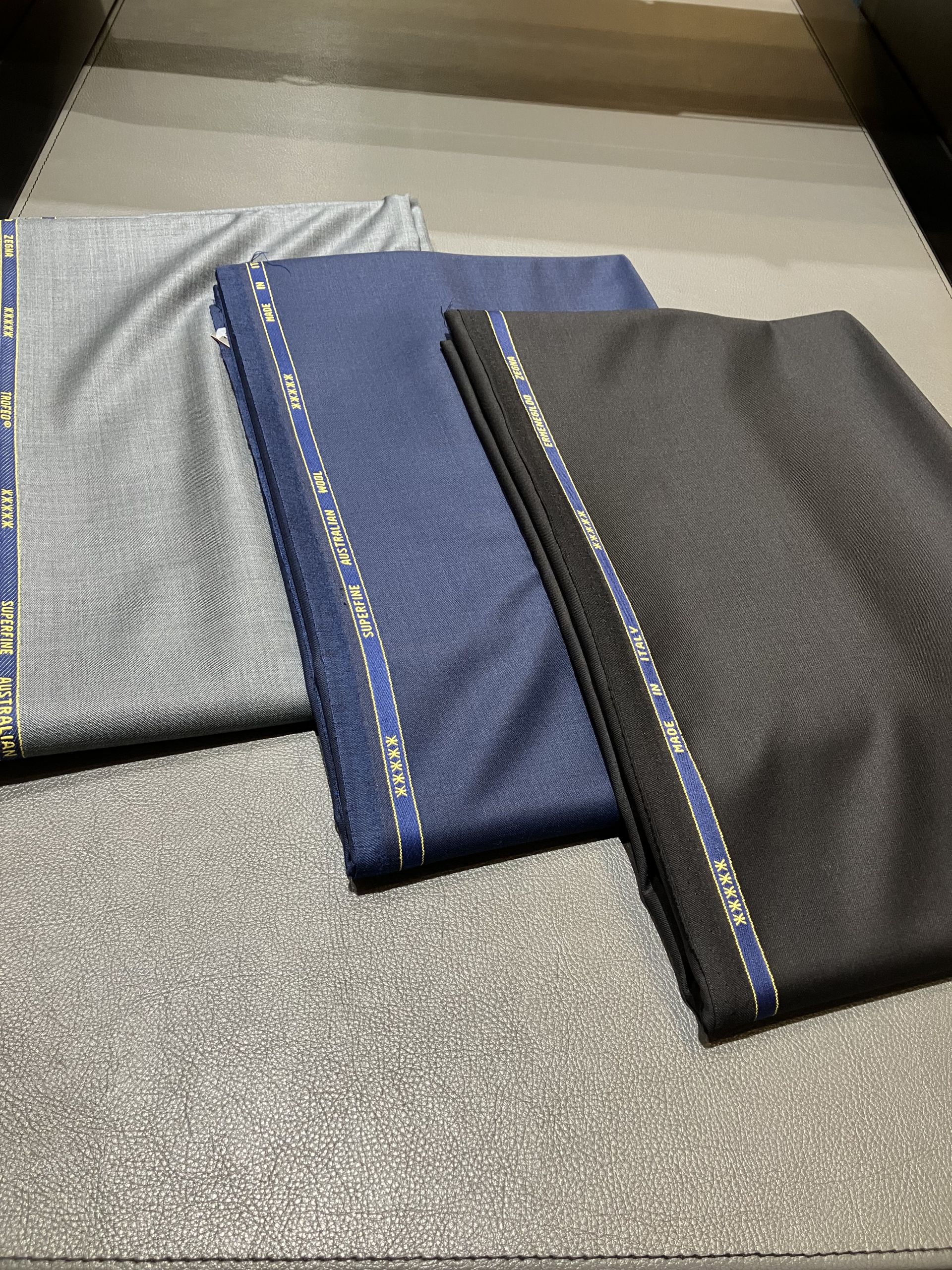 写真2種類の生地は同じゼニア同士で、右がトロフェオです。