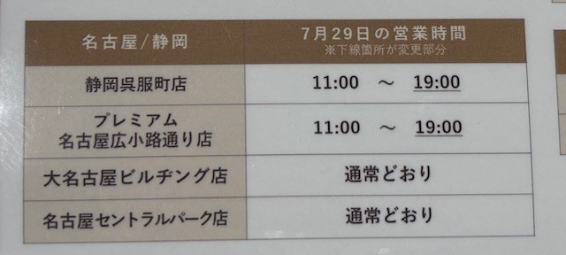7月29日(火)は棚卸業務の為、閉店時間が変更されております!
