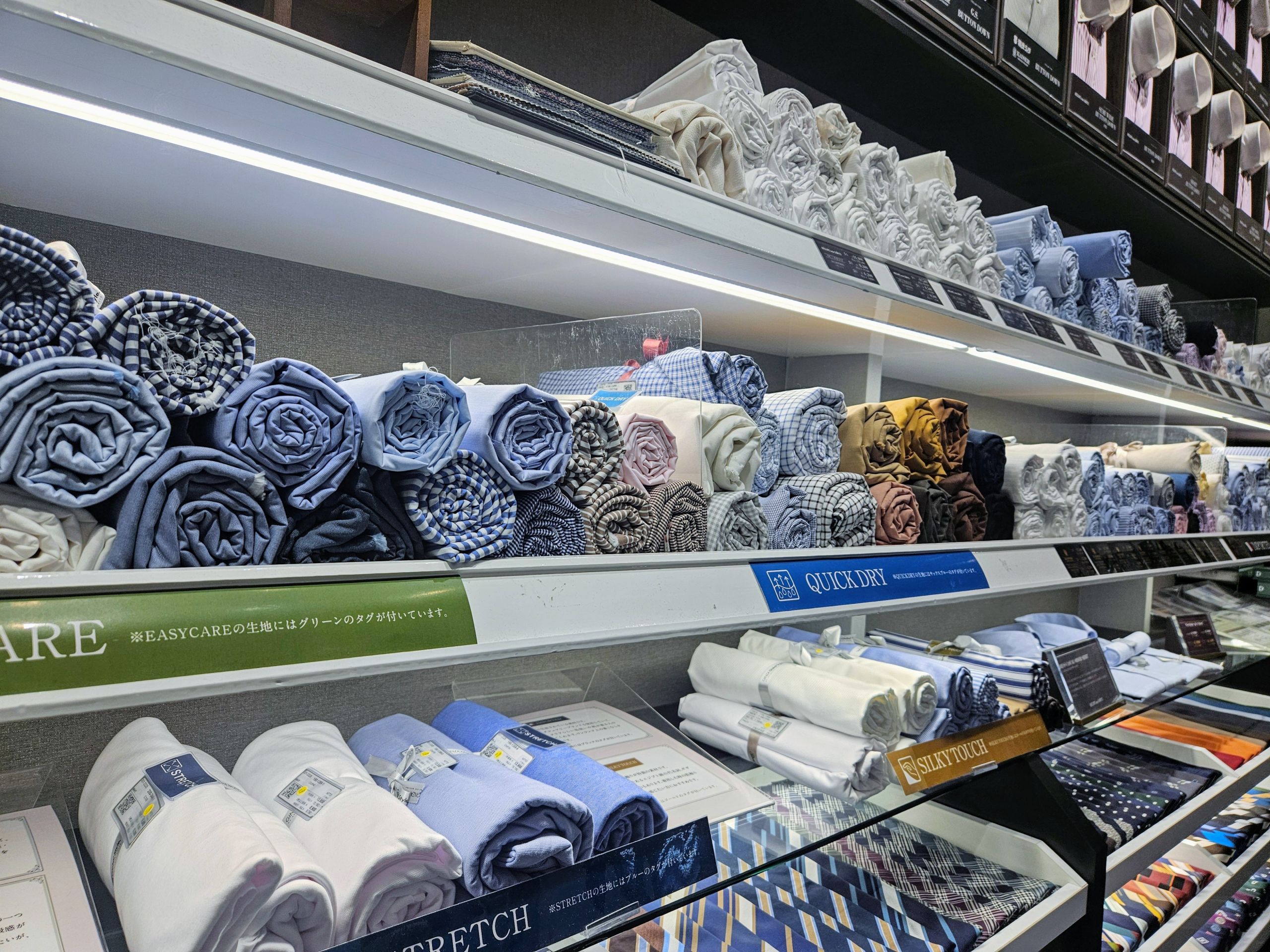 スーツ同様、採寸・生地選び・デザイン選びを経て