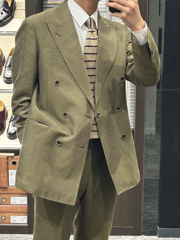 リネン100%の生地でスーツを作ろうか迷いましたがやはりシワ感が出過ぎてしまう、、