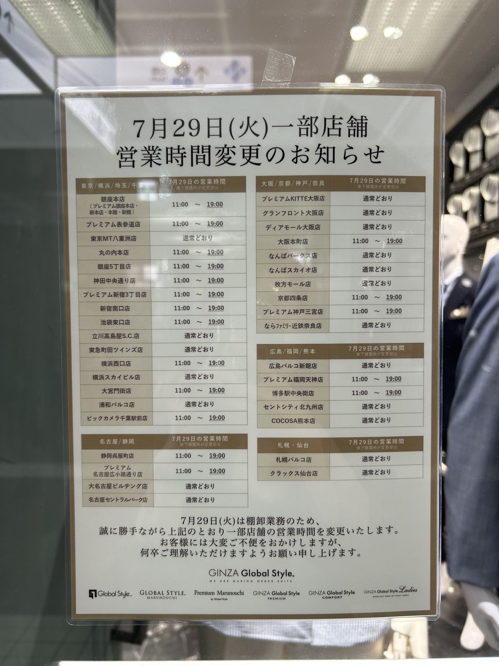 本日7/29(火)は棚卸業務のため、誠に勝手ではございますが19時に閉店致します。