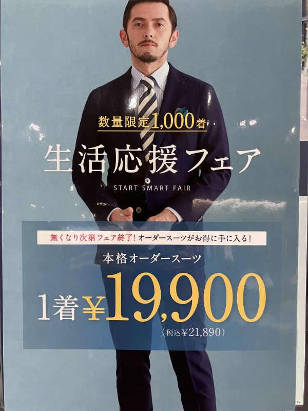 オーダースーツがなんと1,000着限定で21,890円(税込)です。