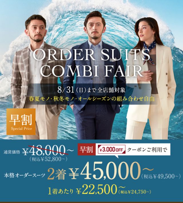 この生活応援フェアで壮大なるオーダースーツ人生の一歩を踏み出しましょう!