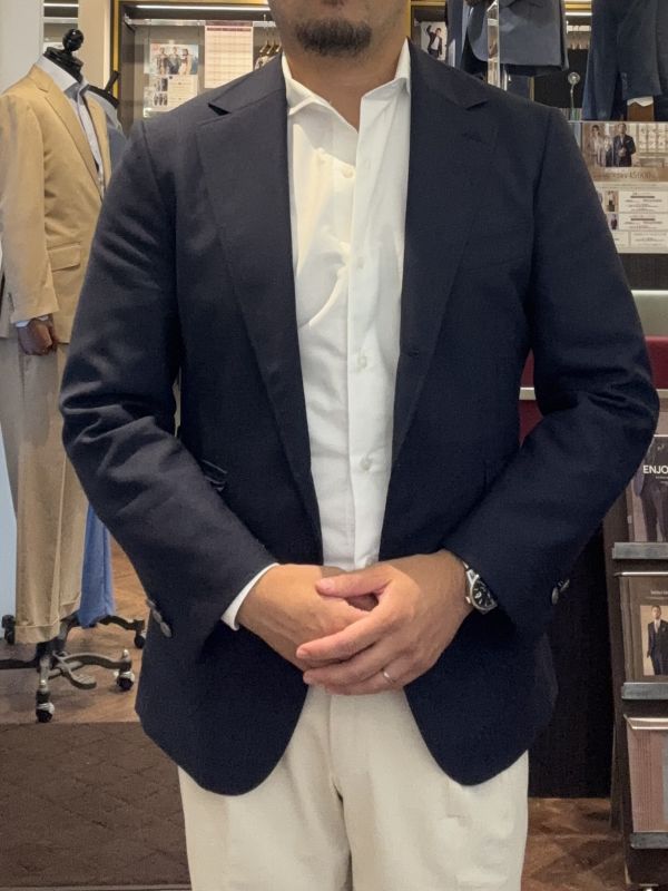 分かりやすく言うと軽く柔らかい気心地の、ジャケット単品でも着回ししやすいモデルとなっております。