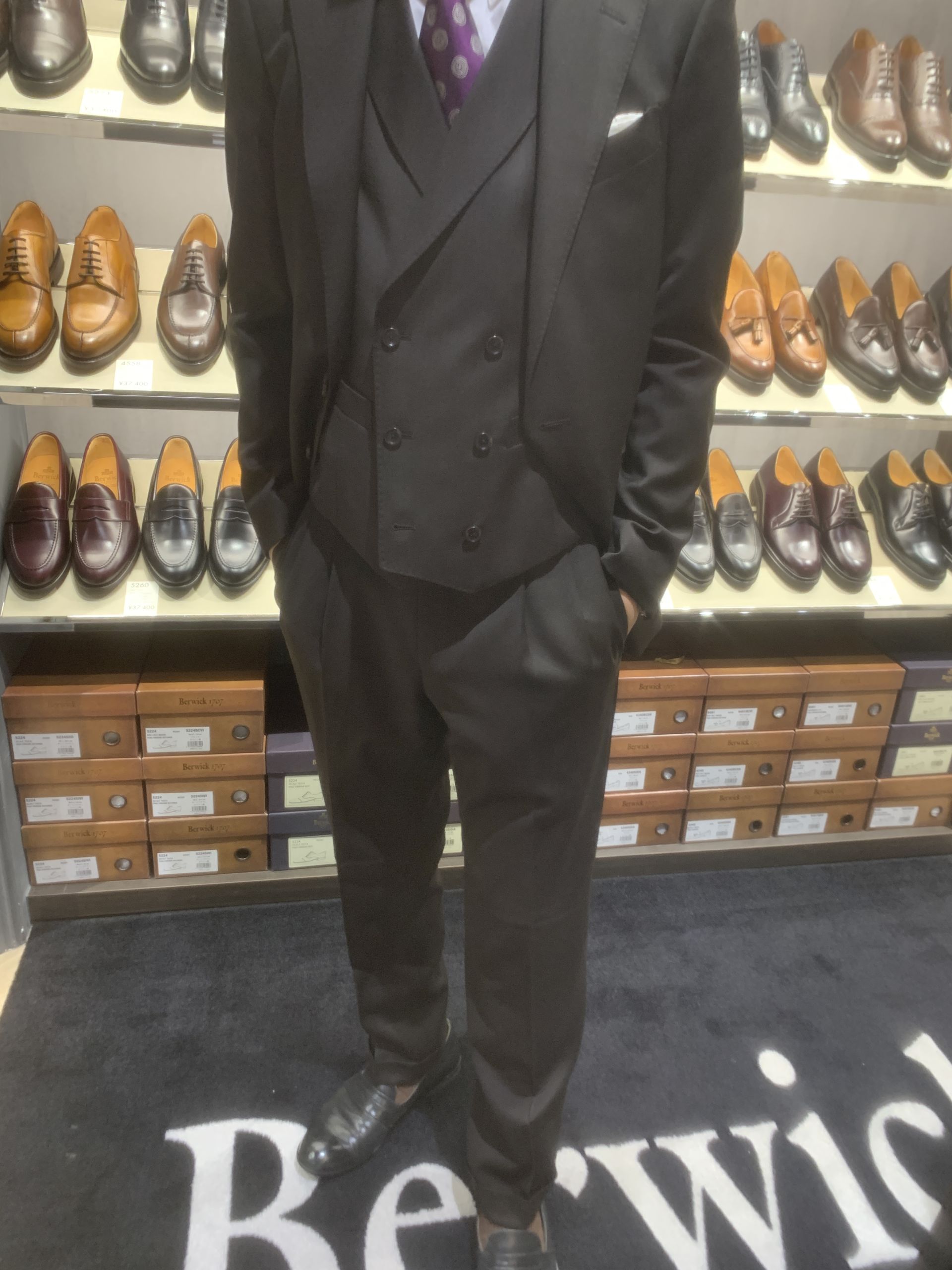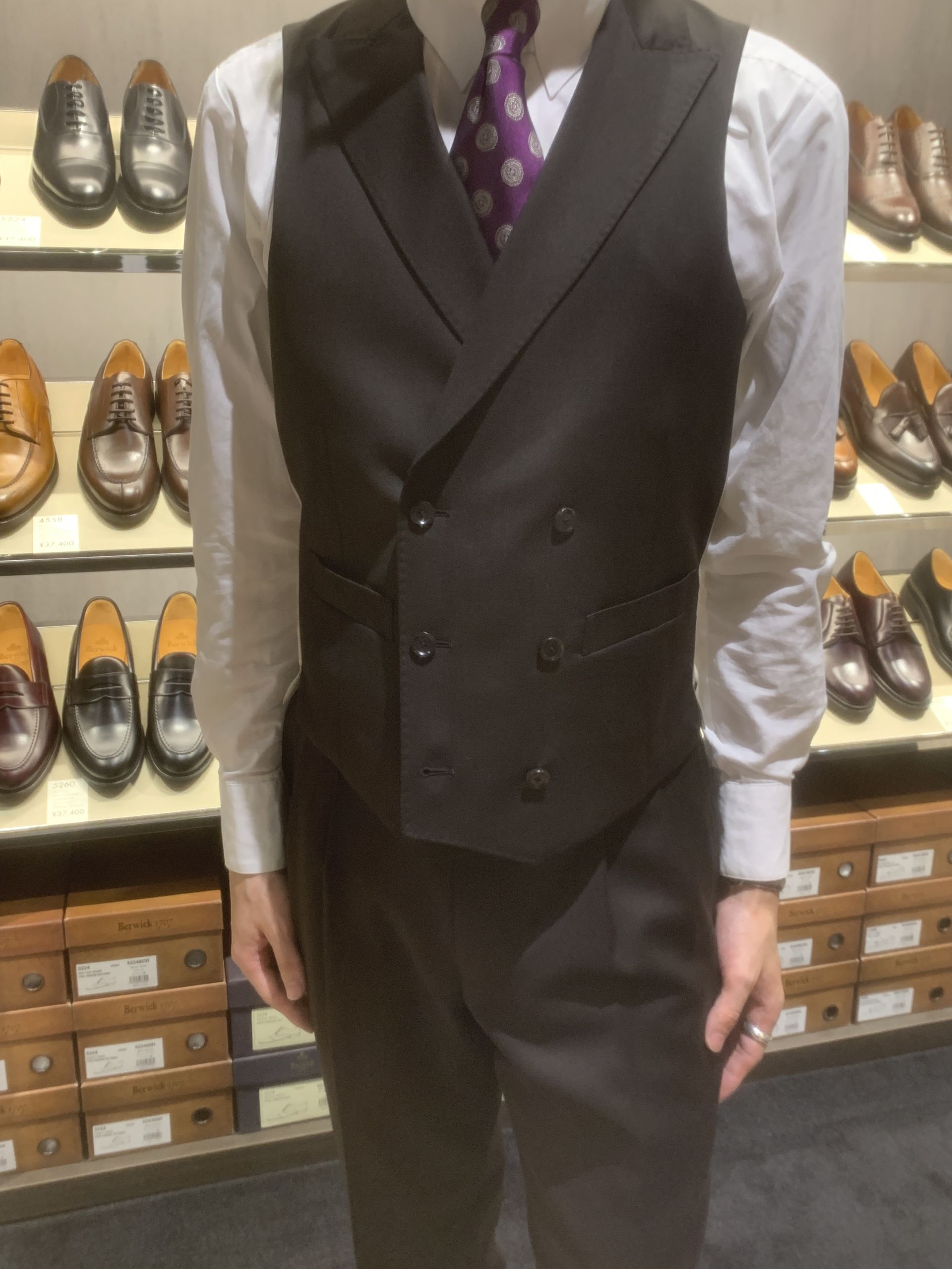カノニコの新作生地で仕立てたベスト付のかっこいいスーツです。