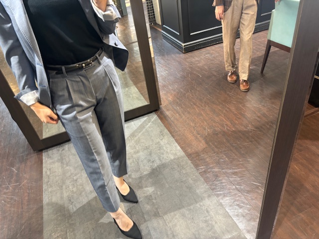 パンツ 1タックのテーパード 正直レディース向きではなかった為 仕上がってから調節しました。。。 裾巾もゆってりしててお気に入りです♪ こんなかわいいスーツが なんと!!! グローバルスタイルで作れちゃいます♪ みなさまもこだわりの1着作ってみて下さい(=゚ω゚)ノ 大阪本町店 萩原