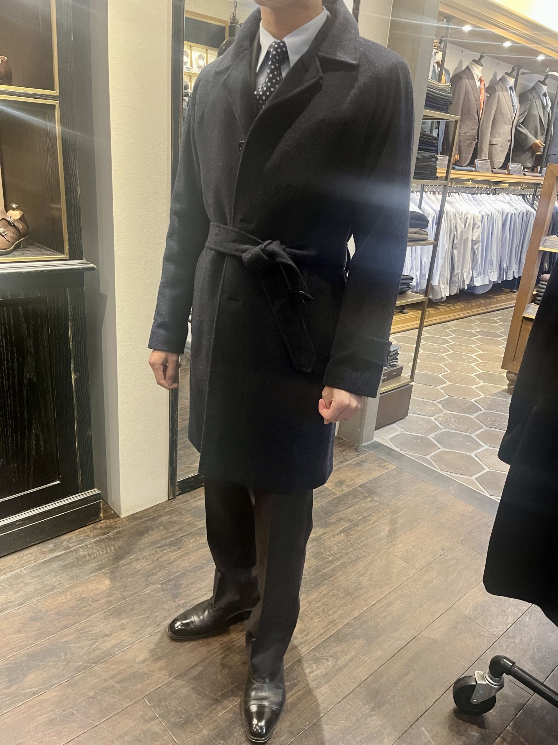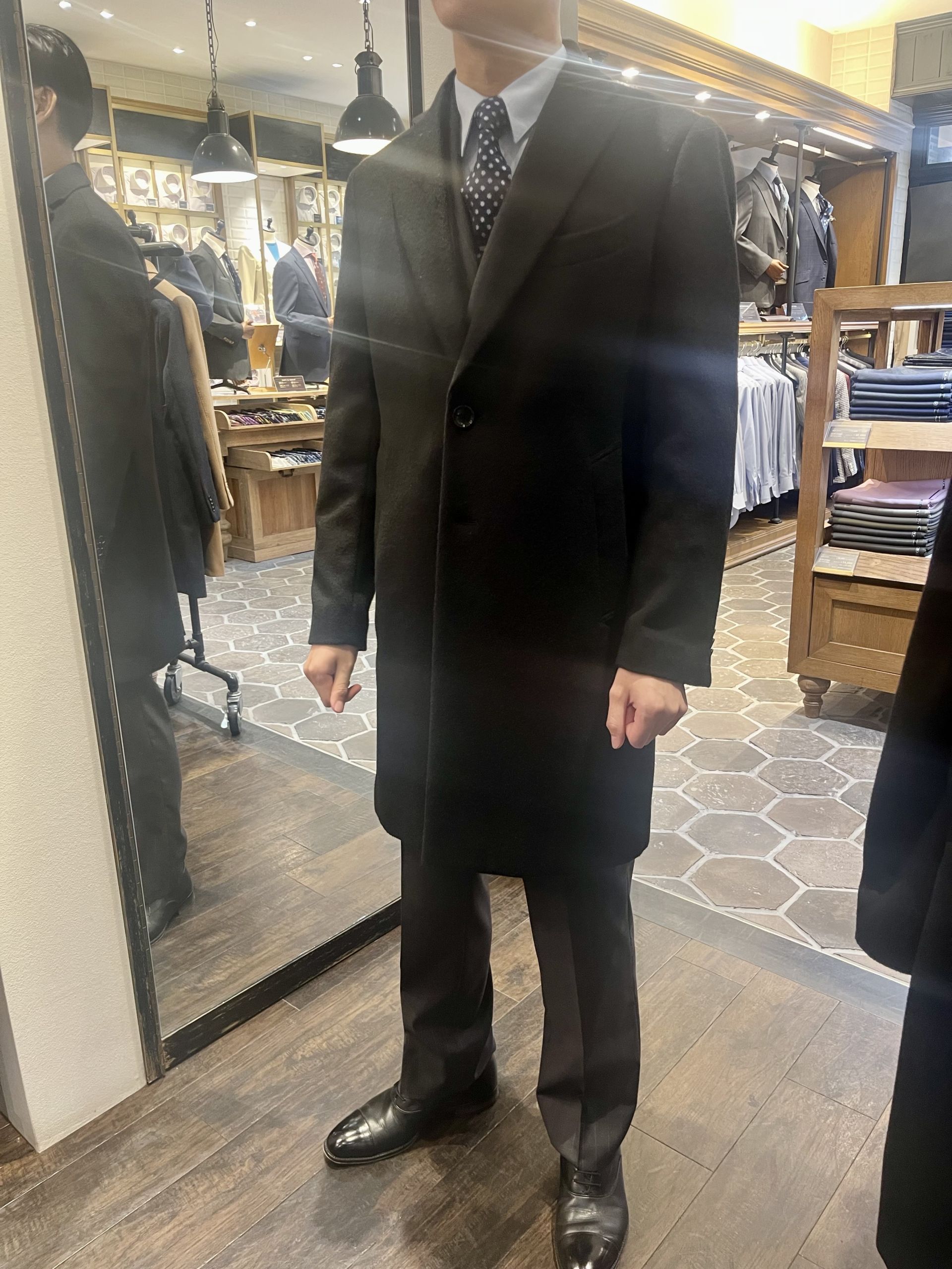 さてそんな話から今年はコートを二刀流で着こなす予定のスタッフ大村の写真を使いまして成人式におすすめのコートを2種類ご紹介致します。