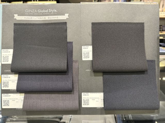 こちらはブラック、ネイビー、グレーなどベーシックなお色味でご用意しております。