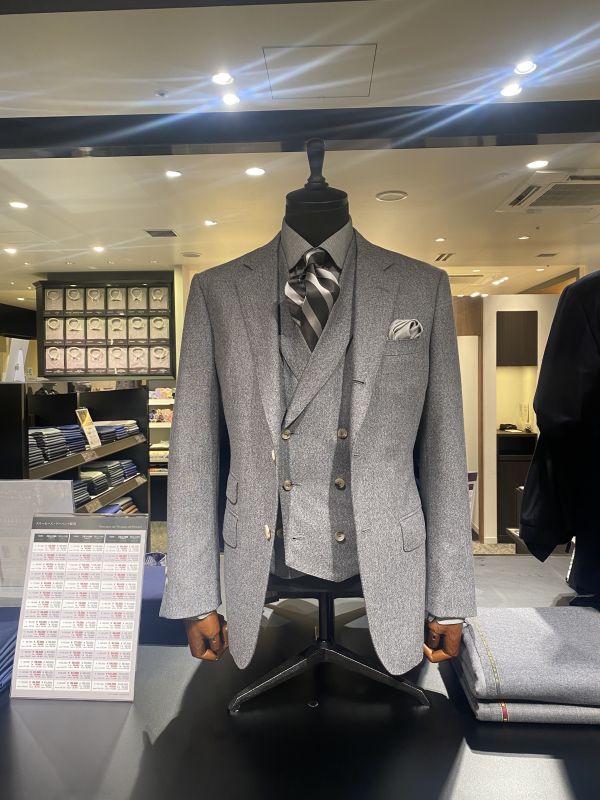 オーダーとなるとどうしてもお渡しにお日にち頂いてしまいますので是非、少し先取りしたスーツをお仕立てしてみてください!