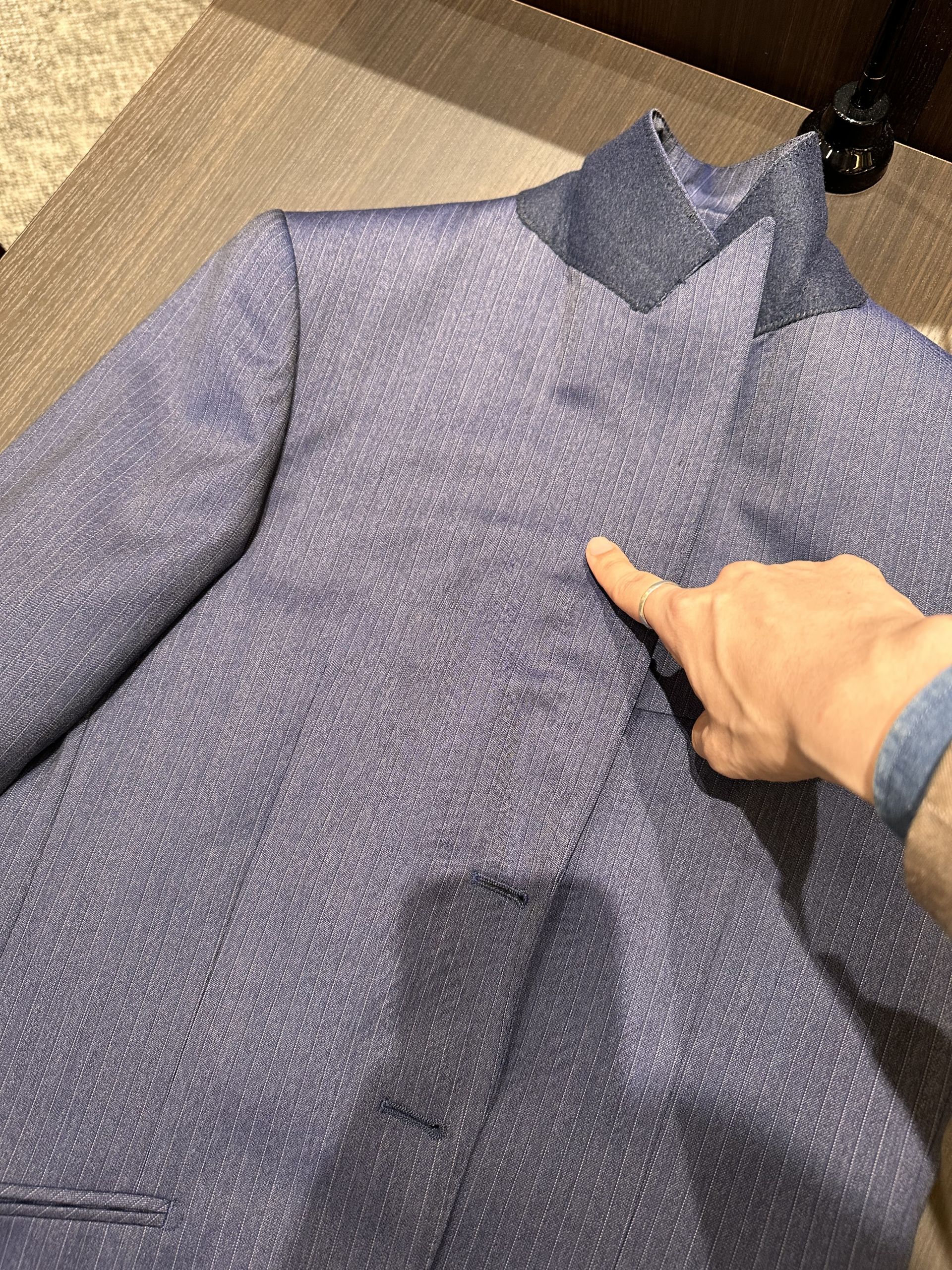 いいスーツとはやはりアイロンワークによる立体感の出し方にあるかとおもいます。
