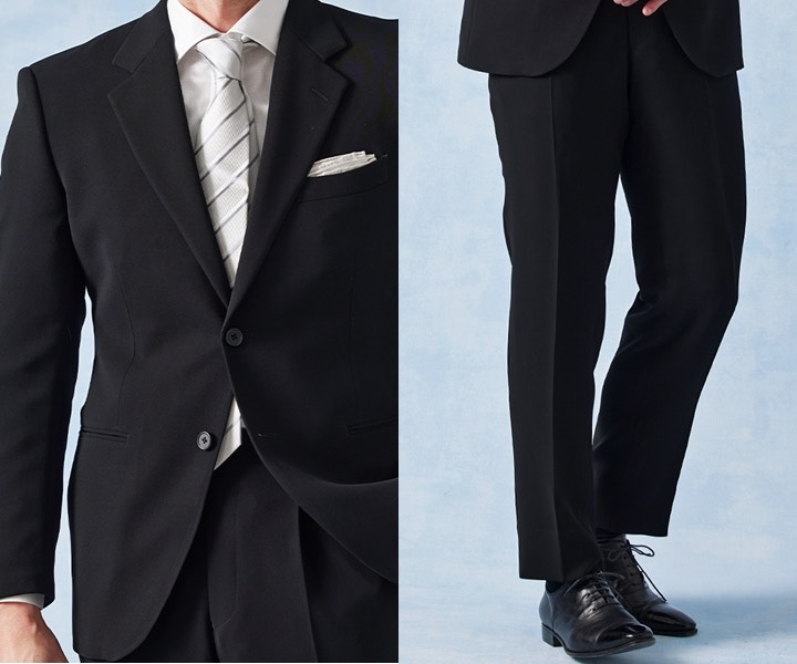 ブラック、ダークネイビー、チャコールグレーなど暗めの落ち着いた色のスーツです。
